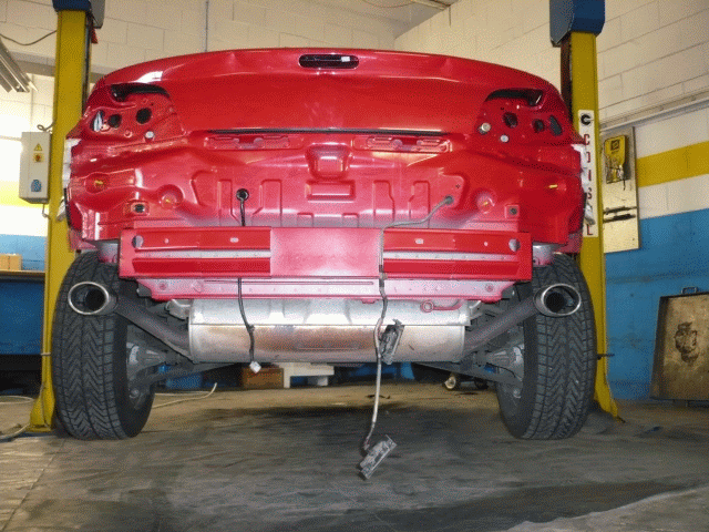 Im 3. Schritt wurden Endrohre von Fox im " Porsche-Look " montiert. Die Original-Endrohre wurden abgebaut und die neuen mittels angefertigter Edelstahlbleche am Endtopf angeschweisst.