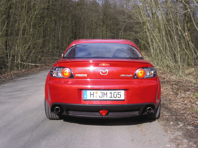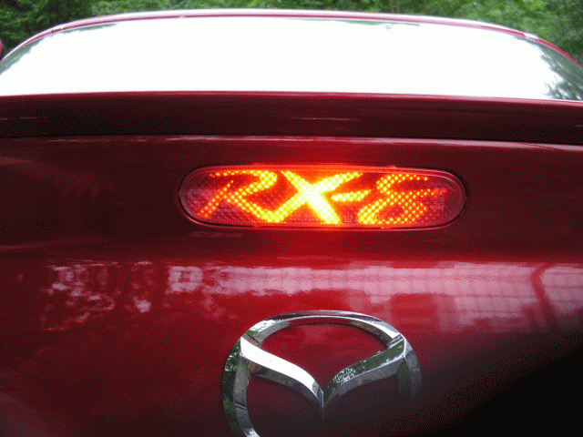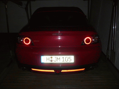 Angefangen hat die Heckverschönerung im absoluten LOW-BUDGET-Bereich. :-) Ein RX-8 Schriftzug wurde in die Bremsleuchte implantiert.
